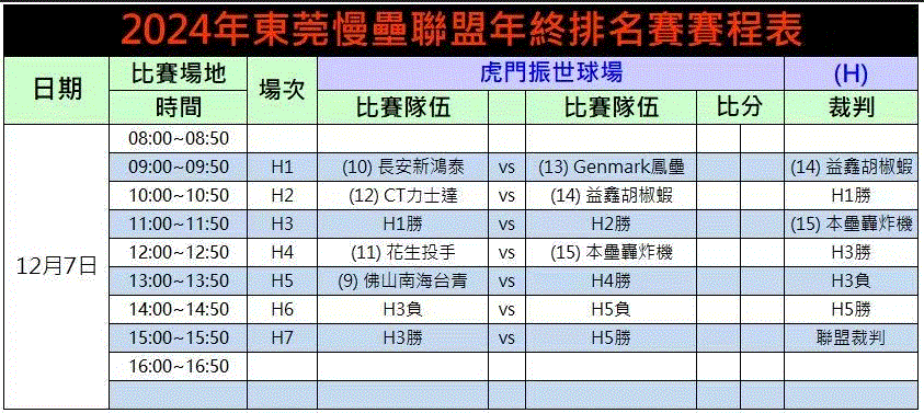比賽日期 場次 比賽時間 虎門振世球場 場次 茶山球場 比賽球隊...